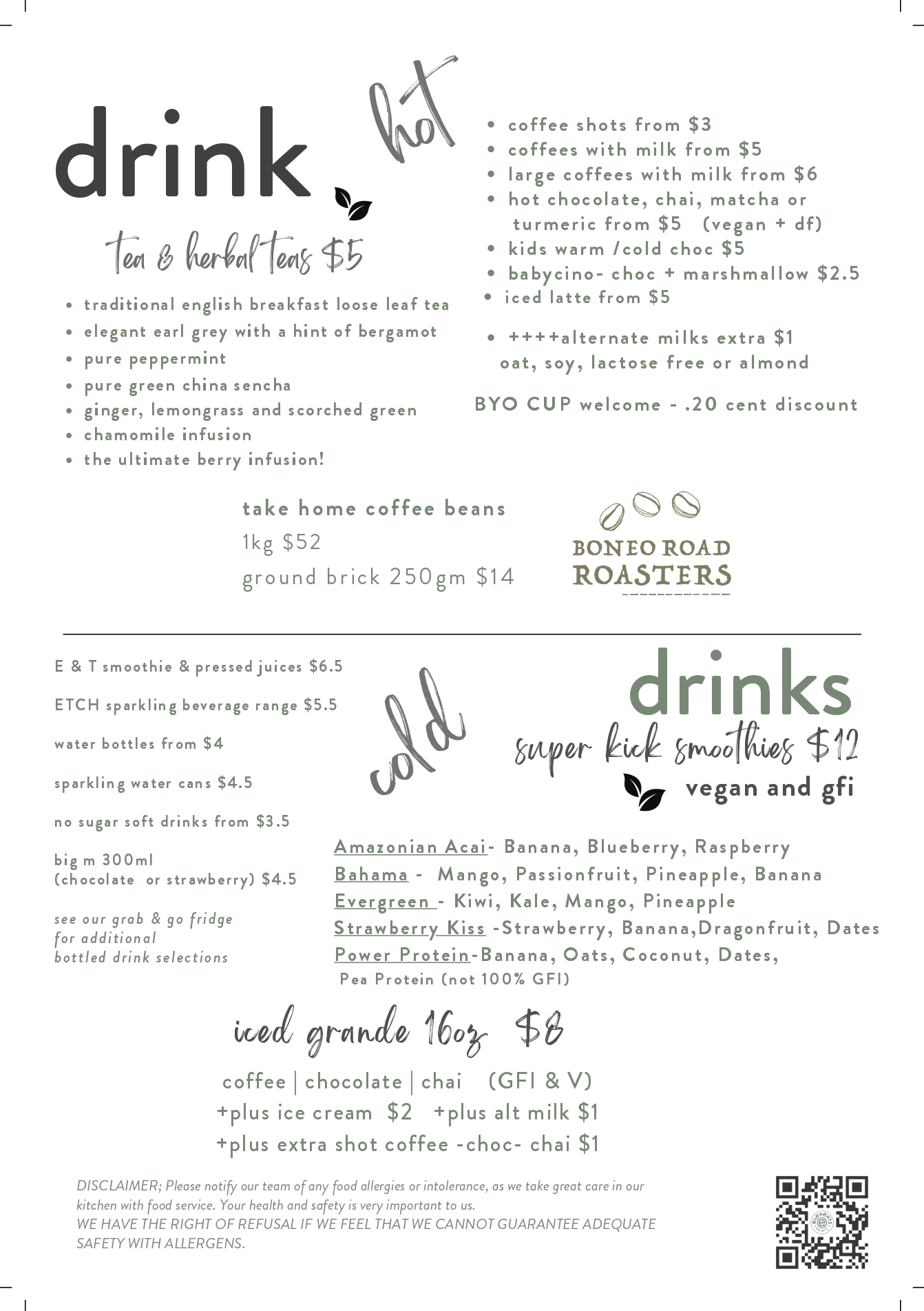 DISCLAIMER; Please notify our team of any food allergies or intolerance, as we take great care in our